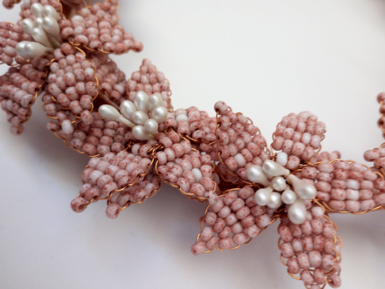 Behold this enchanting handmade pink floral crown hanger, adorned with lustrous beads! A whimsical treasure crafted with meticulous care, it transforms any corner into a gallery of elegance. Perfect for displaying your cherished accessories while adding a touch of artistic charm to your sanctuary. A delightful keepsake for those who appreciate handcrafted beauty.